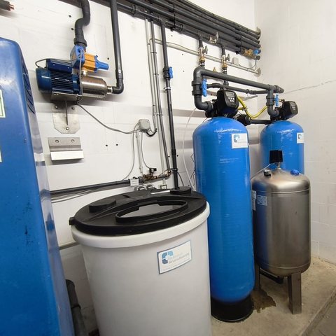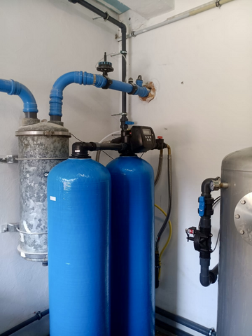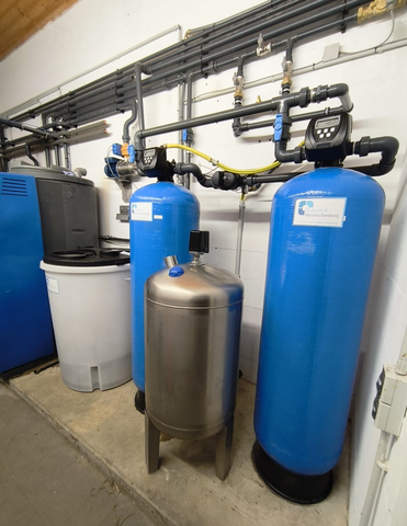 Installiert wurde eine vollautomatische, wasserzählergesteuerte Pendel-Enthärtungsanlage zur zuverlässigen Enthärtung von Nutzwasser. Zwei robuste GFK-Druckbehälter arbeiten im intelligenten Pendelbetrieb und gewährleisten jederzeit eine unterbrechungsfreie Versorgung mit enthärtetem Wasser – auch bei hohem gleichzeitigen Bedarf.